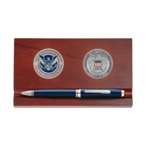 Desk Pen Holder w/ 2 Agency Challenge Coins