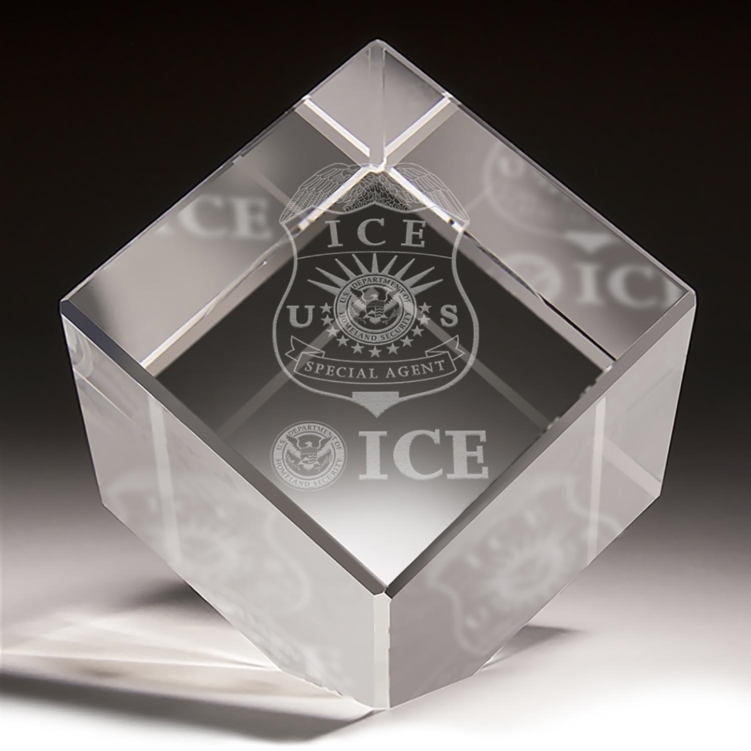 • Crystal cube with 3-D laser etched ICE Special Agent Badge
