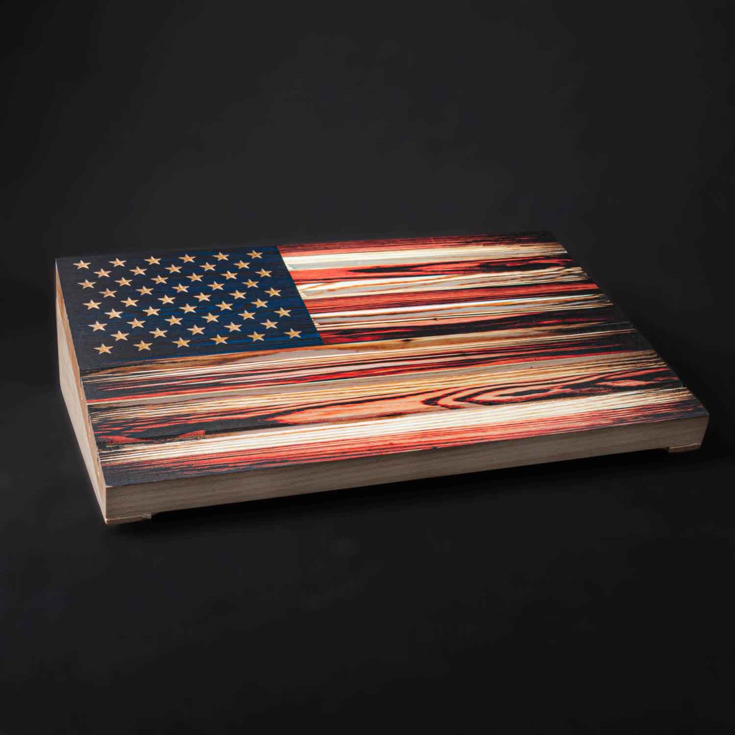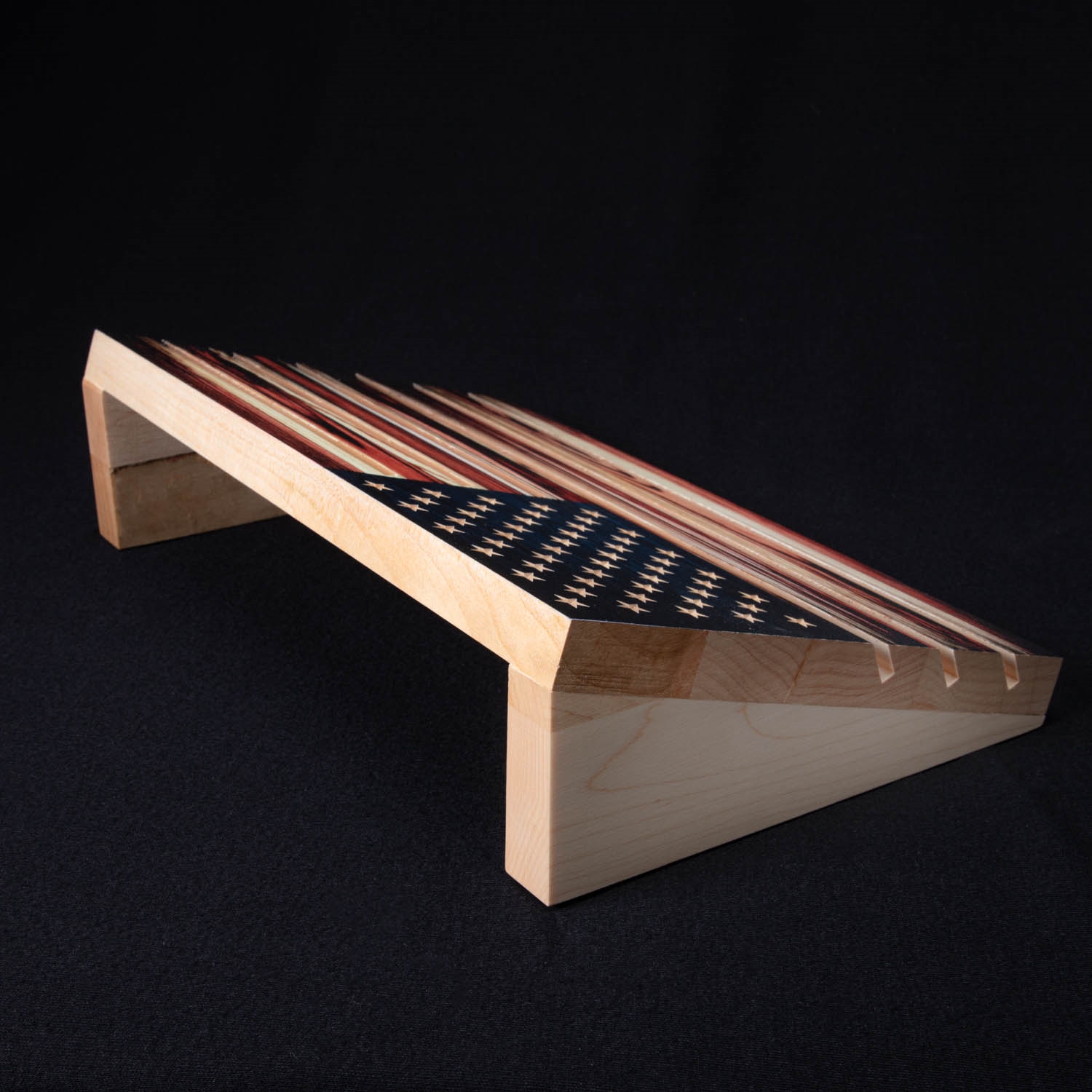 - Three-tone, red, natural and blue stained w/ Union Stars laser etched