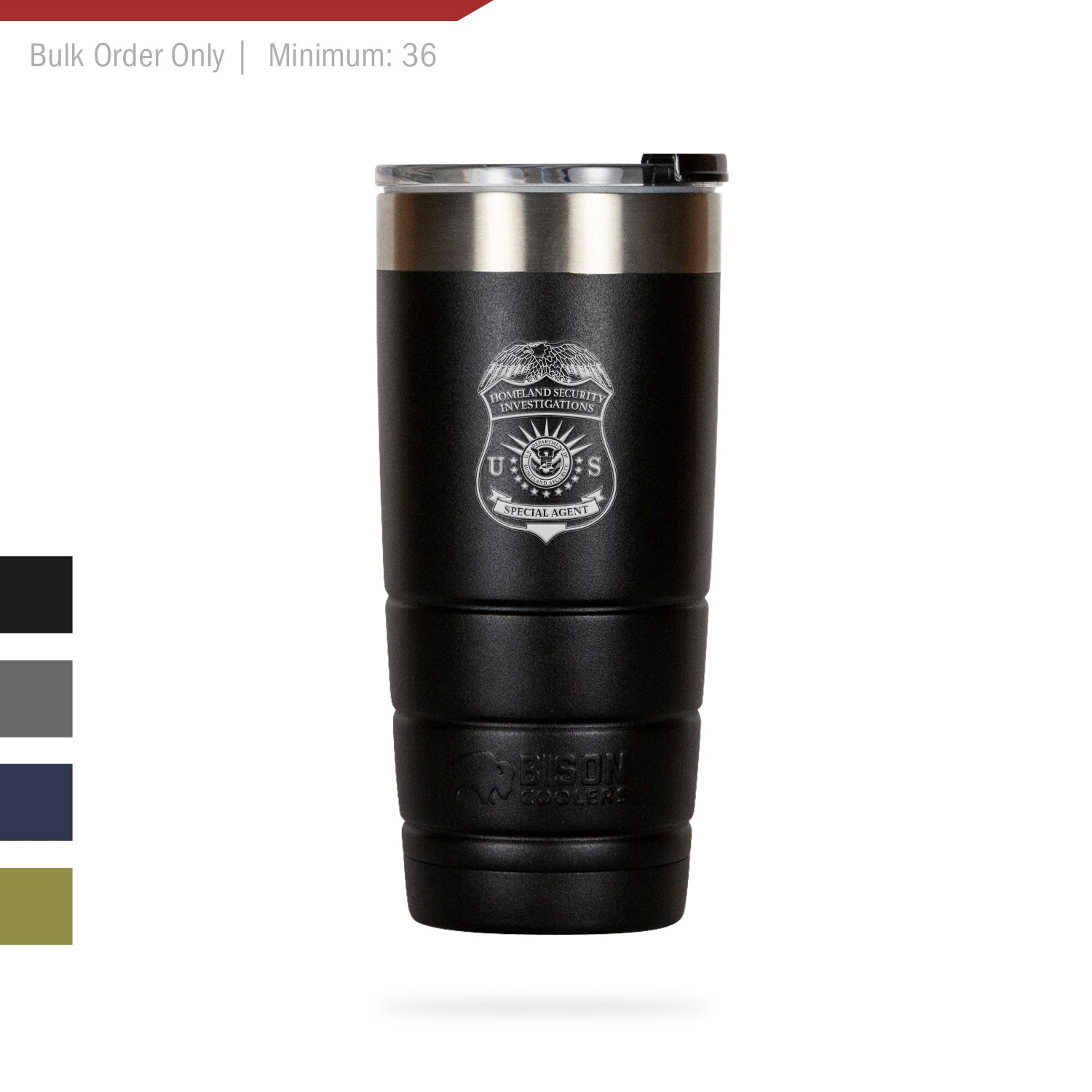 The Bison® 22 oz. Tumbler does not discriminate against coffee, tea, water, beer, frozen drinks or any other beverage it keeps cold for up to 24 hours and hot up to 12 hours. The durable powder-coated finish is available in 4 colors.