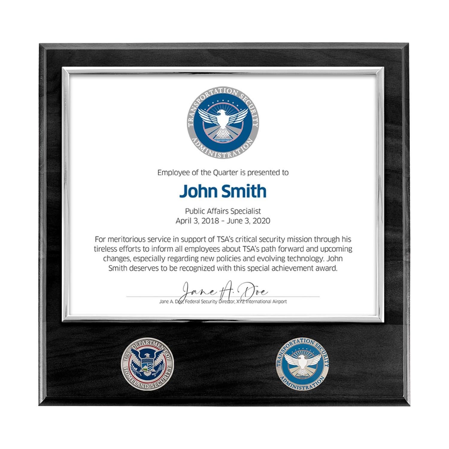 Certificate Plaque w/ 2 Coins (TSA) – Silver / Black
