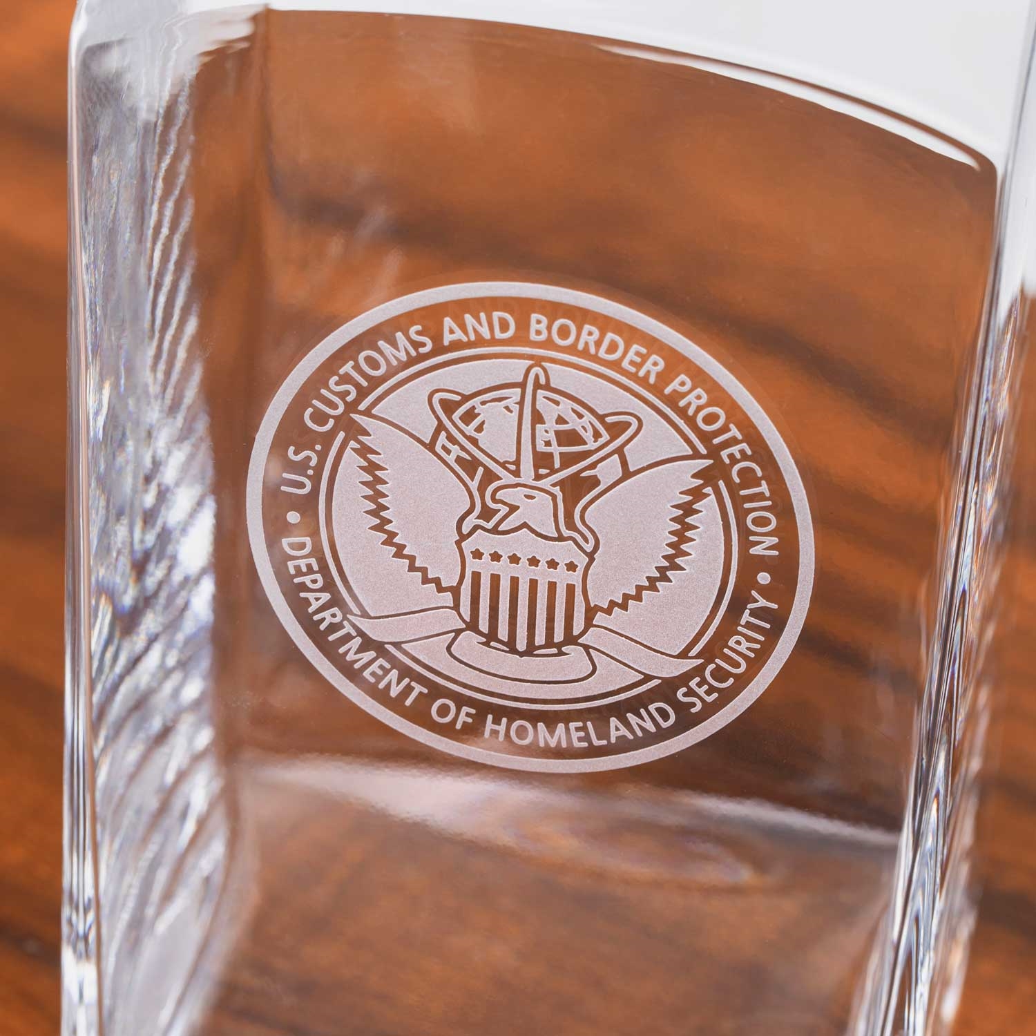 Elevate your collection with this exquisite crystal decanter, proudly featuring a deep-etched seal of the U.S. Customs and Border Protection (CBP), a symbol of dedication and service under the Department of Homeland Security. Crafted with precision in Poland and expertly decorated in the USA, this decanter combines superior craftsmanship with patriotic design. Perfect for whiskey enthusiasts or as a distinguished gift, its elegant, clear glass body and spherical stopper add a touch of sophistication to any setting.