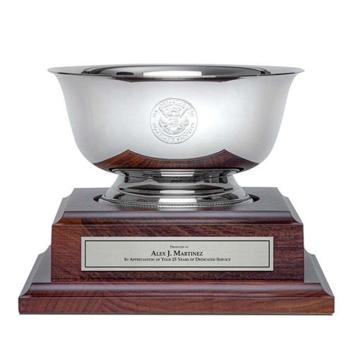 We all know Paul Revere for his famous midnight ride to alert the colonial militia that the British we coming. But did you also know that he was a talented established Boston silversmith? In 1767 Sons of Liberty commissioned Revere to create a silver “Liberty Bowl”. This handcrafted pewter bowl by Salisbury honors Revere’s original design. It’s equally eye-catchingas a trophy award.