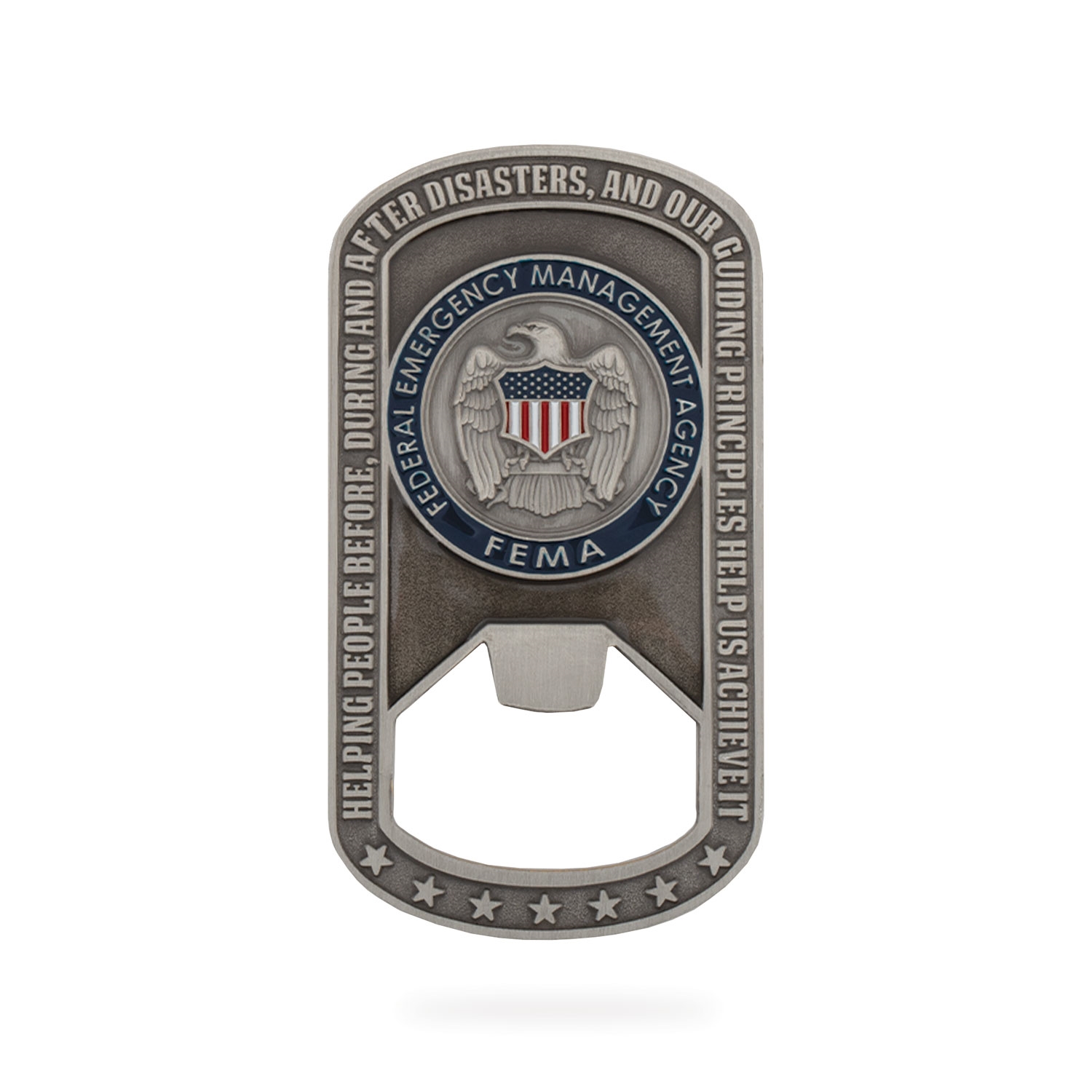 - 2.5″ L Nickel silver finish dog tag/bottle opener coin