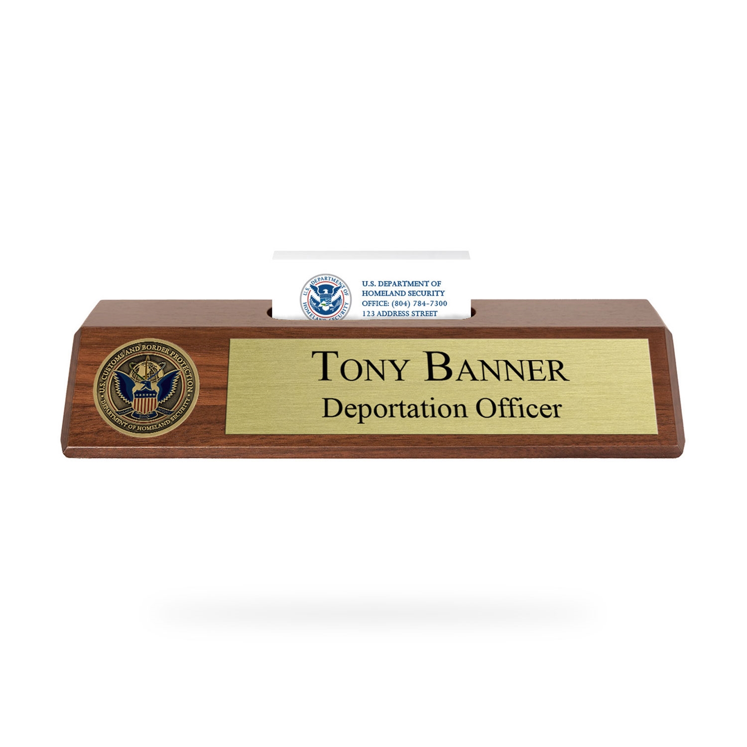 - Includes 1.75 in. antique brass coin (DHS-CBP seal) recessed on the left-hand side