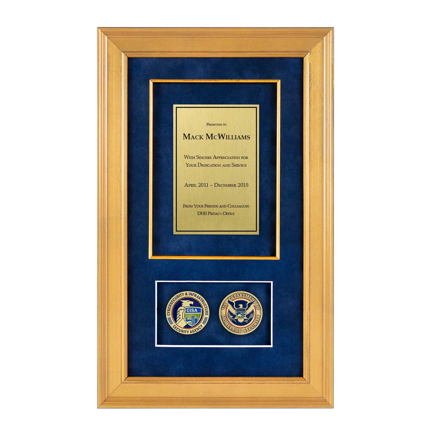 Recognition Shadow Box (Gold) w/ Coins (CISA)