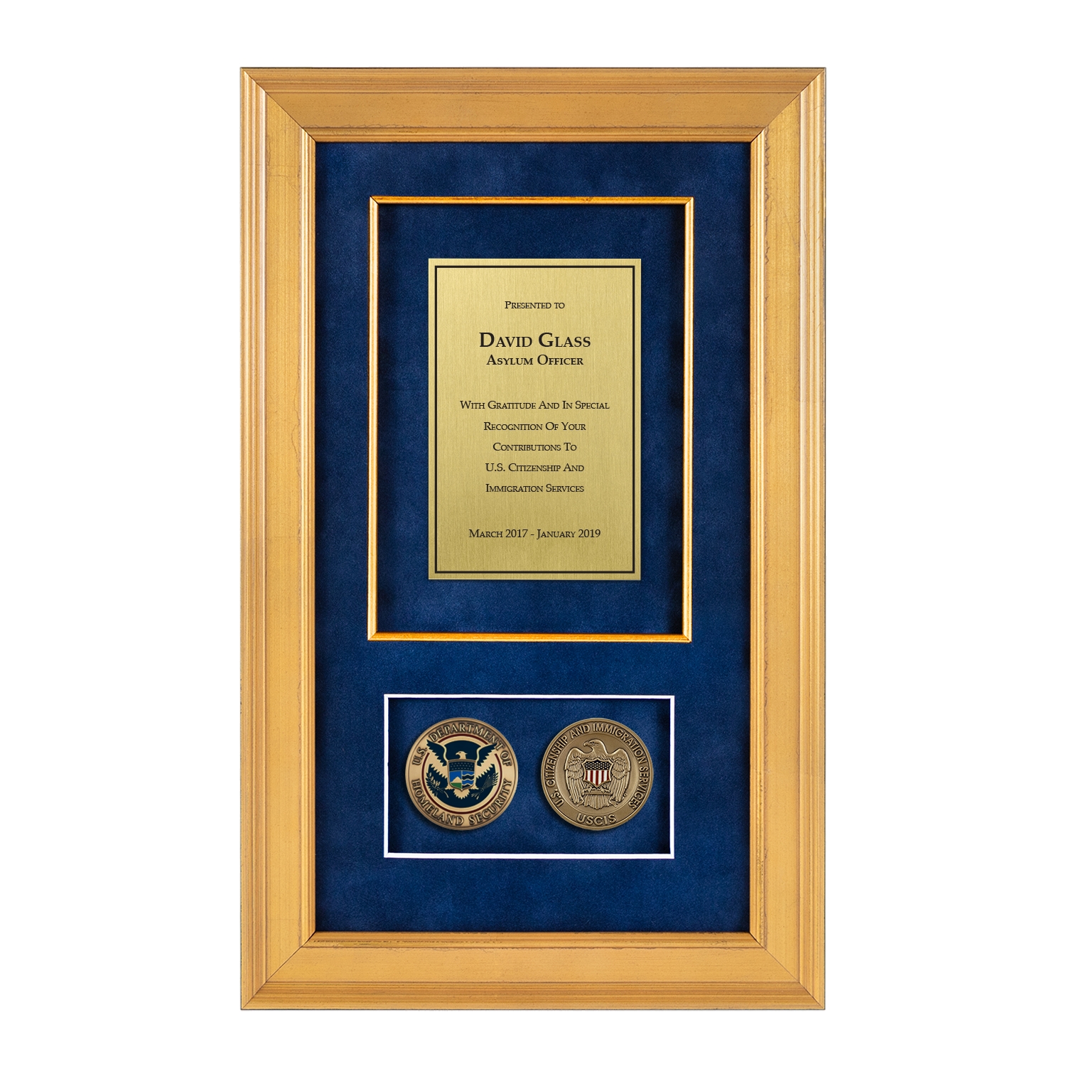 Recognition Shadow Box (Gold) w/ Coins (USCIS)
