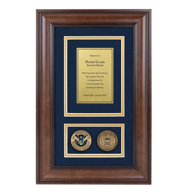 - Two 1-3/4″ die-struck coins (DHS/USCIS)