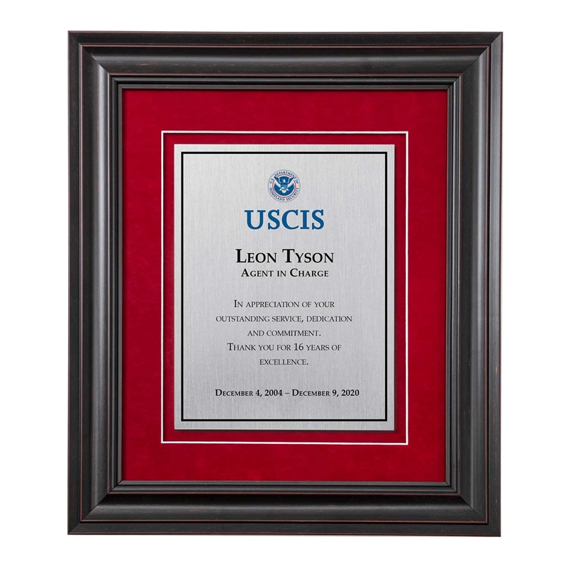 New for 2021, this framed plaque is perfect and simple for most all of your recognition needs.