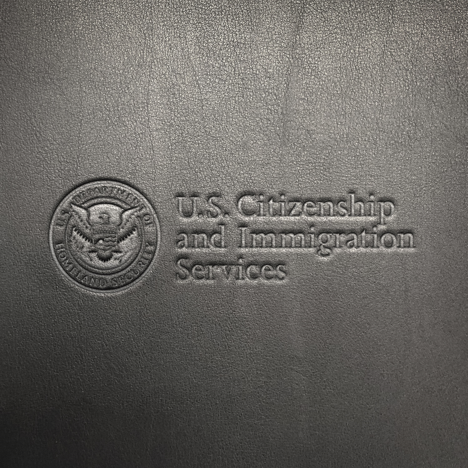 - Front cover is decorated with debossed DHS seal and U.S. Citizenship and Immigration Services text