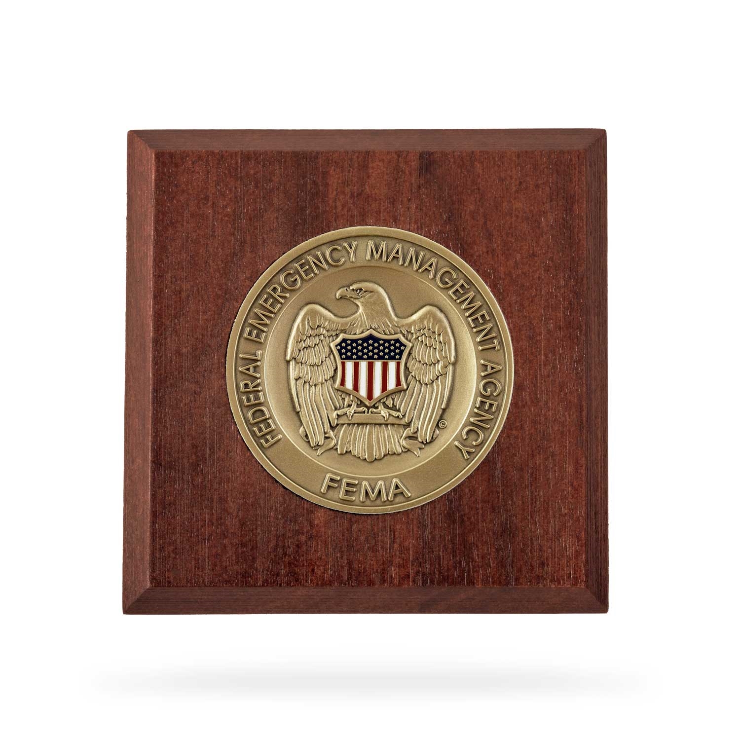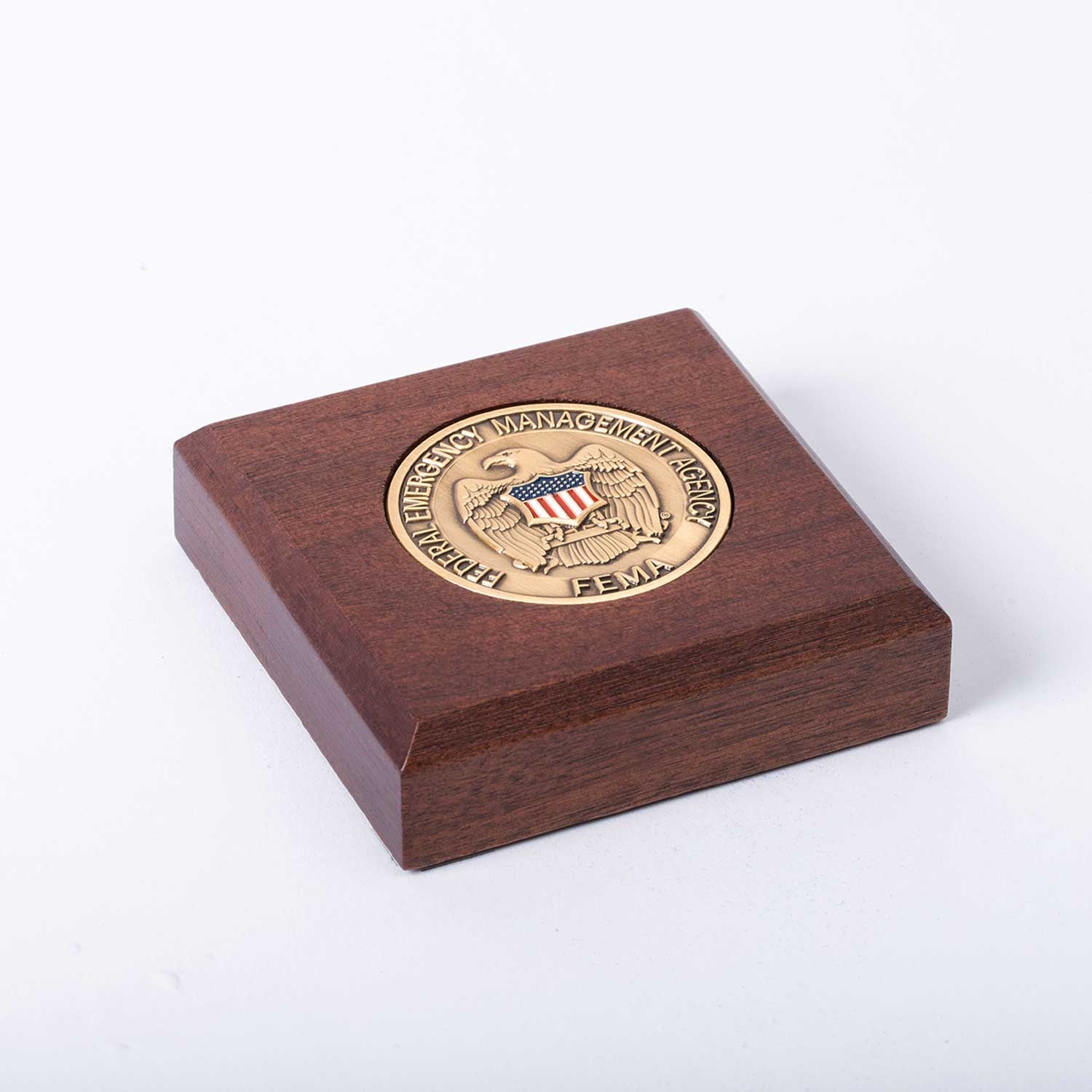 Wooden Paperweight w/ Coin (FEMA) – Brass