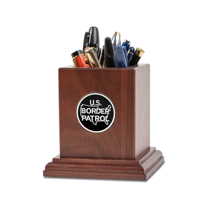 Wooden Pencil Cup w/ Agency Challenge Coin